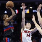 Photo by Chris Schwegler/NBAE via Getty Images Another Cade triple-double leads Detroit to a crazy win after a late rally. After Tobias Harris was ruled out with a right thumb sprain and Jaden Ivey was a late scratch after going through warm-ups, the Detroit Pistons rolled out typical starters Cade Cunningham, Tim Hardaway Jr. and Jalen Duren, but added the … [Read more...] about Pistons vs Heat final score: Detroit wins a wild one in overtime