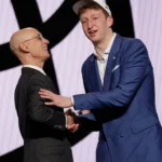 Danny Wolf was on the podium after getting selected 27th by the Brooklyn Nets at the 2025 NBA Draft. The 7-foot playmaker discussed his journey to this point, his night in the green room and his thoughts on the fit in Brooklyn. [youtube https://www.youtube.com/watch?v=eo9zGO5ft6c?feature=oembed&w=1000&h=563] Q. Did you text Ben (Saraf)? DANNY WOLF: No, I don’t even have … [Read more...] about Video & Quotes: Danny Wolf reacts to being selected 27th in 2025 NBA Draft