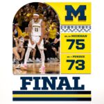 By SAM LANCE The top spot in the Big 10 now belongs to No. 20 Michigan after its 75-73 win over No. 7 Purdue at the Crisler Center on Tuesday night. The Wolverines used a 12-2 run from the 3:45-mark until there was 39 seconds left to secure the victory. Junior guard Braden Smith made Michigan fans sweat in the closing seconds. He hit two 3-pointers to bring the … [Read more...] about Michigan claims first place in Big 10 with home win vs. Purdue