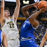 Dusty May was joined on the podium by Elliot Cadeau, Nimari Burnett and Yaxel Lendeborg after Michigan’s win over Saint Louis. DUSTY MAY: I’m extremely proud to be a part of this team and the way they played ball today against an excellent basketball team, well coached, and to see how well they play together, how well they cover each other, even through the mistakes, they just … [Read more...] about Video & Quotes: Michigan Press Conference after Saint Louis