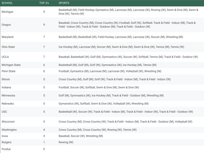 Michigan and Oregon led the way with 9 top-3 finishes each but, in the Wolverines’ case, three of those came in sports with just five or six competing teams (men’s gymnastics and men’s and women’s lacrosse). As indicated earlier, in addition to winning the regular season football and baseball championships in their first year in the league, Oregon was incredibly strong in cross country and track and field events. Also, Oregon secured these top-3’s while fielding just 20 sports while Michigan produced the same amount of top-3’s in 30 sports.