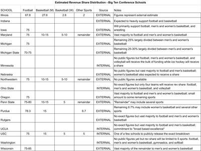 This table summarizes how each Big Ten school might allocate their rev share but note that much of this is not confirmed and comes from sources outside the actual athletic departments.