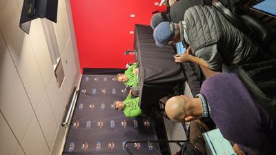 But the story of last night’s game undoubtedly was the matching Grinch sweaters that Tom Izzo and Oakland coach Greg Kampe were wearing. After the game, Tom Izzo came in for his press conference. He started with his prepared comments and then fielded questions. Before his question session was complete, Kampe came walking into the room, up onto the stage, and sat at the table next to Tom.