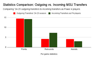 Did the transfer portal produce a net gain or loss for MSU? Let’s see if we can find the answer, from a statistical perspective at least, with the help from some charts!