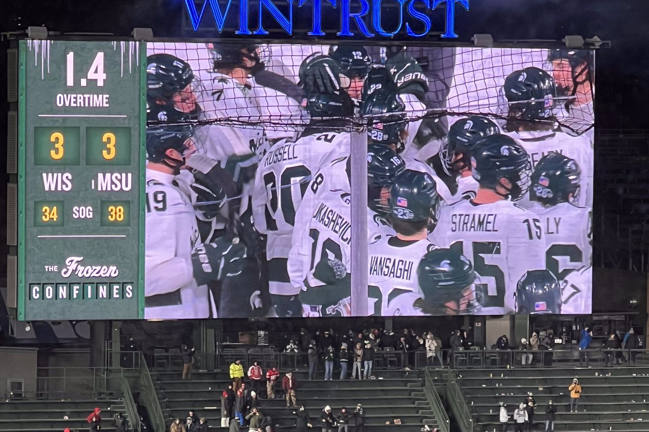 Wisconsin was definitely in their feels and you could tell the energy of the crowd shifted a bit and Wisconsin started the overtime play with a handful of chances in the Spartan end but Di Pasquo stood strong and held off the early momentum. As the overtime period was winding down MSU finally started to control the puck as Howard passed to Andrews who found Russell along the left half-wall. Russell shot the puck and was denied but rebounded in the front of the crease as Russell stuck it through the five-hole with 1.2 seconds remaining. MSU celebrated with the 4-3 victory surrounding Russell as the Spartan crowd exploded.