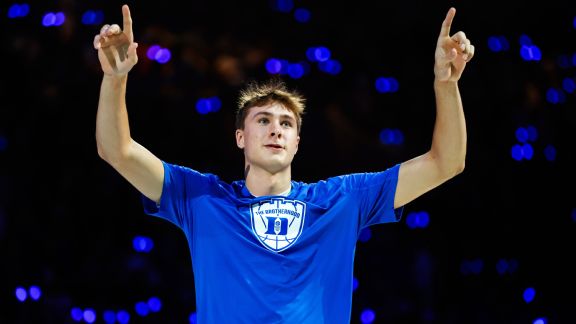 According to the latest ESPN.com NBA mock draft, Duke features three of the Top 10 projected picks next summer in No. 1 Cooper Flagg, No. 6 Kon Knueppel and No. 8 Khaman Maluach, with Tyrese Proctor at 28.