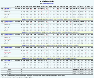 Starting all 37 games for the Wolverines last season, Goldin was Michigan’s leading scorer and second-leading rebounder. He averaged 16.6 points, seven rebounds, 1.1 assists and 1.4 blocks per game while shooting 63.4 percent from the field, 33 percent from three on 0.9 attempts per game, and 73.1 percent from the free throw line.
