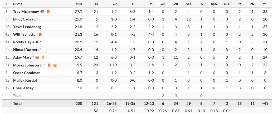 Lendeborg hit a left corner three for his first basket just after checking in. A few plays later, he navigated a double in the opposite corner, finding Johnson in the post, where he drew a foul. Then defensively, Lendeborg chased down forward Tuburu Naivalurua on a fast break for a block. As anticipated, Lendeborg impacted every aspect of the game.