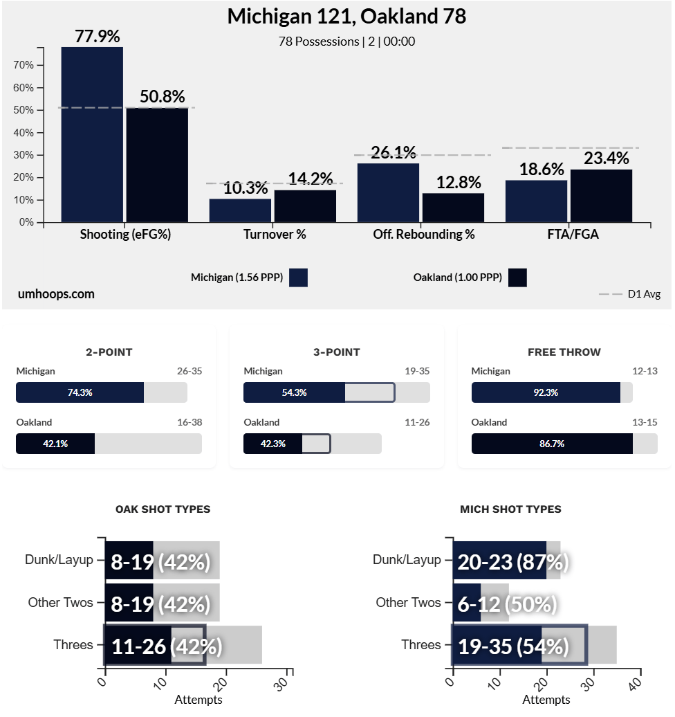 The post At the Buzzer: Michigan 121, Oakland 78 appeared first on UM Hoops.com .