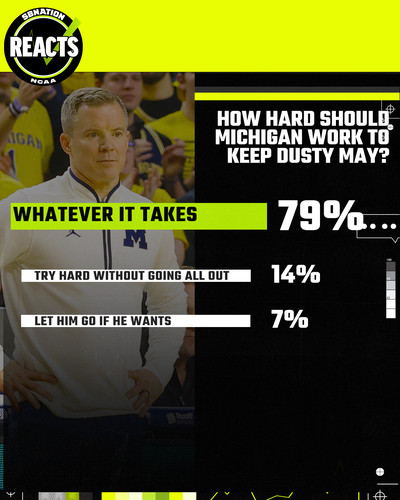 Michigan’s the hottest team in the Big Ten right now and head coach Dusty May has been phenomneal. Should Michigan do whatever it takes to make sure May sticks around in Ann Arbor? The survey results are in from this edition of SB Nation Reacts.