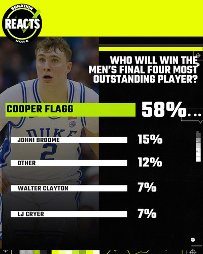 Earlier this week, SB Nation asked fans who they thought would win Final Four MVP — the results are in, and the majority of fans believe Cooper Flagg will walk away with MVP honors.