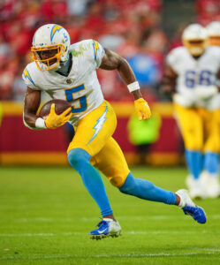 injury absences during his rookie contract. Yet, with both starters off the roster in 2024, Jim Harbaugh reduced the contract-year contributor’s playing time. Palmer, who will turn 26 in September, has still put together back-to-back seasons of at least 15 yards per reception. He tallied 769 yards in 2022 — when Allen was down for much of the way with a hamstring issue — to help the Bolts to the playoffs. On a market featuring plenty of downward-trending standouts, Palmer brings sneaky value.