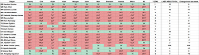- Assumed in: Jahmyr Gibbs, David Montgomery, Craig Reynolds, Sione Vaki