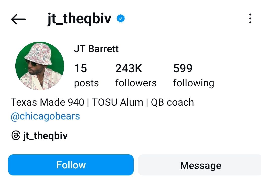 While nothing official had been announced, Barrett updated his Instagram profile to indicate he’s with the Chicago Bears, even tagging that teams official account.