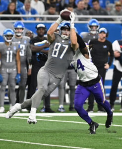 LaPorta picked up the injury in the Lions’ Week 10 victory over the Commanders, interrupting another solid season from the third-year tight end. He is on pace for career-highs in yards per game (54.3), catch rate (81.6%), and yards per target (10.0), all of which rank among the league’s top 10 tight ends. LaPorta’s 2.00 yards per route run are a career-high and the second-most of any tight end this season, per Pro Football Focus (subscription required