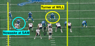 Nowaske also saw 20 defensive snaps in the second half, but he remained mostly at SAM, which was more of a direct result of the injury issues the Lions had on the EDGE.
