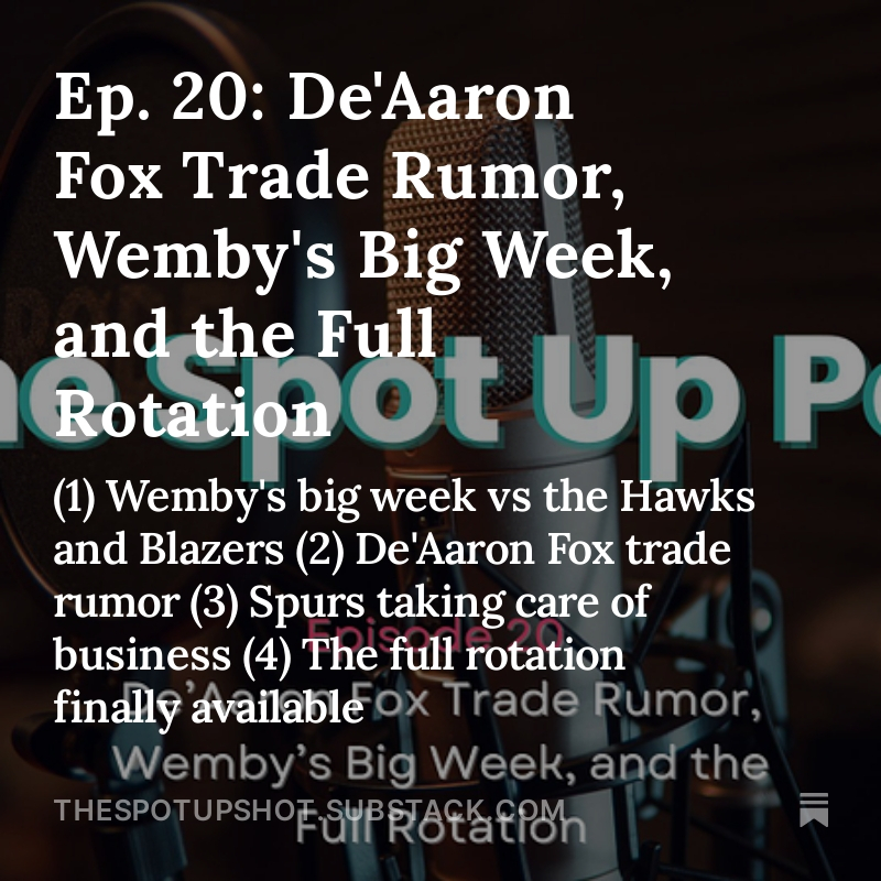 Ep. 20: De’Aaron Fox Trade Rumor, Wemby’s Big Week, and the Full Rotation open.substack.com/pub/thespotups… pic.x.com/O23sxkjxth – 9:26 PM